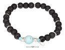 Sterling Silver 7" Robins Egg Blue Dyed Howlite And Lava Beads Bracelet