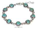 Sterling Silver Bracelet: 7" Round Simulated Turquoise Link Bracelet With Roped Border