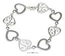 Sterling Silver Bracelet: 8" Plain And Filigree Open Hearts Bracelet