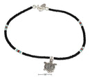 Sterling Silver Bracelet: 9" Black And Silver Beaded Anklet With Turtle Dangle