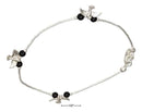 Sterling Silver Bracelet: 9" Liquid Silver And Black Onyx Anklet With Bird Charms
