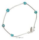 Sterling Silver Bracelet: 9" Liquid Silver And Simulated Turquoise Nugget Anklet