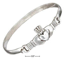 Sterling Silver Bracelet: Antiqued Claddagh Bangle Bracelet With Latch Hook Closure