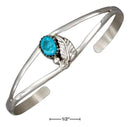 Sterling Silver Bracelet: Leaf And Stabilized Turquoise Stone Open Wire Cuff Bracelet