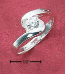 Sterling silver womens 5mm cubic zirconia ring with offset "s" band