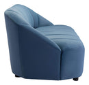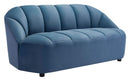 Channels of soft, blue velvet run vertically giving this modern sofa a cozy aesthetic. Its armless profile allows you to slide in and curl up in its deep seat. A perfect lux look for your apartment or loft space.