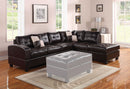 This reversible sectional sofa offers contemporary design and amazing style that is sure to please. Features bonded leather upholstery, oversized buttonless tufted seat and back cushions will keep you snug and comfortable. The checkered style accent pillows and wood-like block legs complements the overall look.