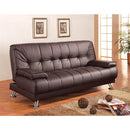 This stylish contemporary sofa bed will help you make the most of your space, with convenient multi-function and a sophisticated look. The rich brown faux leather has a modern tufted look, while removable armrests add to the cozy and comfortable look. Shiny tubular metal legs are the perfect finishing touch. Easily convert this comfortable sofa to a double bed at night by dropping the back cushion, for a cozy guest bedroom in an instant. Add this wonderful piece to your small home, apartment, or dorm for a room that everyone will enjoy.