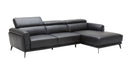 This two piece sectional sofa set would be the perfect lounging furniture in your home. It consists of a sofa and a right facing chaise. The wooden constructed frame provides sturdiness to this furniture piece. The faux leather upholstery makes it quite comfortable. This set has adjustable faux leather headrests which provide extra support to keep your head on. It has metal legs. The overall black color gives it a sophisticated look and makes it suitable for all kinds of decor. This piece would add character to your living space.