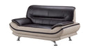 Add a stylish and modern sophistication to your home with this luxurious loveseat, designed in contemporary style. Constructed from quality wood, this loveseat features a premium black color faux leather upholstered scooped seat with gray colored straight back with tufted cushioning, providing comfortable seating. Pillow top armrests with contrast welt trim details add an elegance to this loveseat while the stainless steel constructed slender legs in silver finish offers great support and sturdiness to the whole structure. Perfect to be placed in your living room for great seating experience.