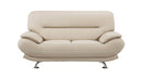 With a soft faux leather upholstery, this luxurious loveseat offers seat with optimal comfort. Constructed from quality wood, this loveseat features cream faux leather upholstered cushioned seat and back with channel tufting detail while cushioned armrests added an extra comfort. The loveseat is supported on stainless steel constructed slender legs in silver finish. It offers supreme comfort and relaxation while seating and perfect furniture piece to be placed in your living room.