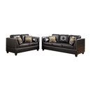 Make your guests feel jealous seeing this fantastic 2 piece sofa set that includes a sofa and loveseat with plush back and seat supports, triangular arm rest trimmed in nickel finished studs. This sofa set flaunts in espresso brown bonded leather that make it look more appealing. This will easily blend with rest of your furniture.