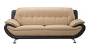 Create an elevated yet relaxed atmosphere in your home or office with the help of this comfortable Sofa. Made with wooden frame that is supported by chrome finished metal legs, this Sofa features dual-color leather upholstery in elegant finish of brown that is easy to clean. Its unique shape completes the contemporary look of this piece, while cushioned seat and backrest along with pillow-top armrests provide exceptional comfort. Add this Sofa to your living room for the perfect place to sit back and enjoy family movie nights and Sunday football games.