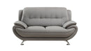 This loveseat is the most perfect piece of furniture for lounging. This plushed cushioned loveseat has all the characteristics to provide you utmost comfort. There leatherette upholstered pillow top armrests and back allows you to sit back and relax. The bustle back is slightly tilted which provides good support. The stainless steel legs and wooden frame adds sturdiness to the loveseat. The gray color gives the loveseat a modern look. This loveseat would add character to your living space.