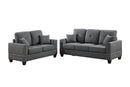 You can give your interior a casual look with the inclusion of this 2 piece sofa set. This 2 piece set comprises one sofa and one love seat. This 2-piece sofa set that features upholstered seating in a cotton blended fabric. It's wide and soft seat and back cushions make it inviting to rest, relax and enjoy a summers day. It also includes nickel finished stud trimming on the front of the armrest and lower section of the seating. Tufted cushion seat and back provides a comfortable sitting, also includes pillow.