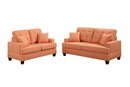 This 2 piece set of sofa comes in a very casual look that can be adorned in any interior space whether its your home or office. Construction of this sofa set involves the use of plywood for base panel with solid pine frame. It features wood legs, giving strength to the whole structure and orange fabric with fiber batting back cushion for maximum comfort, its plush pillow seat and back cushions topped with accent tufting makes its perfect sofa set to relax.