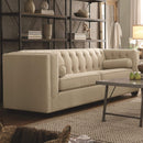 Anchor any ensemble in your home with truly glamorous style when you add this eye-catching and inviting Swanky Sofa to your space. Crafted beautifully with solid kiln-dried hardwood, upholstered with high-quality fabrics, and accented with spaced hand tufting along the back and inner arms with Decorative cord outlines, this sofa brings class, style, and lounging comfort to any room in the home. Its include two lumbar pillows and reversible seat cushions add extra comfort to this sofa.