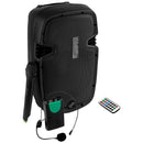 10inch woofer with 1.34inch tweeter; Compression driver with titanium diaphragm; 2-way full-range audio projection; Bluetooth(R)-enabled streaming from compatible devices up to 100ft; FM radio with digital LCD display; Two 1/4inch inputs, stereo RCA, USB & microSD(TM) Card inputs; Stereo RCA output; .MP3 audio recording; USB port doubles as device charger; Built-in digital audio amp; Rear panel rotary dial & button control center; Echo, bass, treble & volume adjustment; Rugged, heavy-duty design; Carry handles; Freq resp: 100Hz-18kHz; Imp: 4ohm ; Built-in rechargeable battery; Includes wireless handheld microphone, headset, power cable & 4 AA batteries;