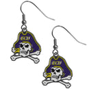 Our officially licensed chrome dangle earrings have fully cast East Carolina Pirates charms with exceptional detail and a hand enameled finish. The earrings have a high polish nickel free chrome finish and hypoallergenic fishhook posts.Officially licensed College product Licensee: Siskiyou Buckle. Fully cast and enameled earrings. Hypoallergenic fish hook posts. Perfect game day accessory. East Carolina Pirates charm with enameled team colors