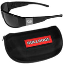 These designer inspired frames have a sleek look in all black with high-polish chrome Georgia Bulldogs shields on each arm with an etched logo. The shades are perfect any outdoor activity like; golfing, driving, hiking, fishing or cheering on the team at a tailgating event or an at home game day BBQ with a lens rating of 100% UVA/UVB for maximum UV protection. The high-quality frames are as durable as they are fashionable and with their classic look they are perfect fan accessory that can be worn everyday for every occasion. The shades come with a zippered hard shell case to keep your sunglasses safe.Officially licensed College product Licensee: Siskiyou Buckle. Comes with a hard shell, zippered case with microfiber interior and large team logo on the lid.. Maximum UVA/UVB protection for all outdoor activities from sun bathing by the pool or an the beach to blocking those sun rays on game day. The high-quality frames feature flexible hinges that help prevent breakage and make the sunglasses more comfortable to wear. No die-hard fan's outfit is complete without these Georgia Bulldogs wrap shades