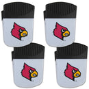 Use this attractive clip magnet to hold memos, photos or appointment cards on the fridge or take it down keep use it to clip bags shut. The magnet features a printed Louisville Cardinals logo.Officially licensed College product Licensee: Siskiyou Buckle. Pack of 4, 2 inch wide clip magnet, with bottle opener on the back. Strong magnet to hold memos or notes. Use a clip to keep chips or other bag items fresh. The Louisville Cardinals logo is printed on the front of the magnet