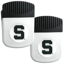 Use this attractive clip magnet to hold memos, photos or appointment cards on the fridge or take it down keep use it to clip bags shut. The magnet features a Michigan St. Spartans dome emblem.Officially licensed College product Licensee: Siskiyou Buckle. Pack of 2, 2 inch wide clip magnet, with bottle opener on the back. Strong magnet to hold memos or notes. Use a clip to keep chips or other bag items fresh. Clip features a Michigan St. Spartans dome logo on the front of the magnet