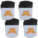 Use this attractive clip magnet to hold memos, photos or appointment cards on the fridge or take it down keep use it to clip bags shut. The magnet features a printed Minnesota Golden Gophers logo.Officially licensed College product Licensee: Siskiyou Buckle. Pack of 4, 2 inch wide clip magnet, with bottle opener on the back. Strong magnet to hold memos or notes. Use a clip to keep chips or other bag items fresh. The Minnesota Golden Gophers logo is printed on the front of the magnet