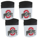 Use this attractive clip magnet to hold memos, photos or appointment cards on the fridge or take it down keep use it to clip bags shut. The magnet features a printed Ohio St. Buckeyes logo.Officially licensed College product Licensee: Siskiyou Buckle. Pack of 4, 2 inch wide clip magnet, with bottle opener on the back. Strong magnet to hold memos or notes. Use a clip to keep chips or other bag items fresh. The Ohio St. Buckeyes logo is printed on the front of the magnet