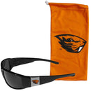 These designer inspired frames have a sleek look in all black with high-polish chromeÊOregon St. BeaversÊshield on each arm with a printed logo. The shades are perfect any outdoor activity like; golfing, driving, hiking, fishing or cheering on the team at a tailgating event or an at home game day BBQ with a lens rating of 100% UVA/UVB for maximum UV protection. The high-quality frames are as durable as they are fashionable and with their classic look they are perfect fan accessory that can be worn everyday for every occasion. The shades come with a colorful, microfiber team carrying bag that can also be used as a lens cleaner.Officially licensed College product Licensee: Siskiyou Buckle. Maximum UVA/UVB protection for all outdoor activities from sun bathing by the pool or an the beach to blocking those sun rays on game day. The high-quality frames feature flexible hinges that help prevent breakage and make the sunglasses more comfortable to wear. Comes with a colorful microfiber bag with team logos that can also be used as a cleaning cloth. No die-hard fan's outfit is complete without these Oregon St. Beavers wrap shades