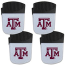 Use this attractive clip magnet to hold memos, photos or appointment cards on the fridge or take it down keep use it to clip bags shut. The magnet features a printed Texas A & M Aggies logo.Officially licensed College product Licensee: Siskiyou Buckle. Pack of 4, 2 inch wide clip magnet, with bottle opener on the back. Strong magnet to hold memos or notes. Use a clip to keep chips or other bag items fresh. The Texas A & M Aggies logo is printed on the front of the magnet