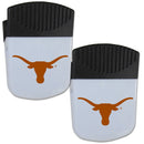Use this attractive clip magnet to hold memos, photos or appointment cards on the fridge or take it down keep use it to clip bags shut. The magnet features a printed Texas Longhorns logo.Officially licensed College product Licensee: Siskiyou Buckle. Pack of 2, 2 inch wide clip magnet, with bottle opener on the back. Strong magnet to hold memos or notes. Use a clip to keep chips or other bag items fresh. The Texas Longhorns logo is printed on the front of the magnet