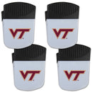 Use this attractive clip magnet to hold memos, photos or appointment cards on the fridge or take it down keep use it to clip bags shut. The magnet features a printed Virginia Tech Hokies logo.Officially licensed College product Licensee: Siskiyou Buckle. Pack of 4, 2 inch wide clip magnet, with bottle opener on the back. Strong magnet to hold memos or notes. Use a clip to keep chips or other bag items fresh. The Virginia Tech Hokies logo is printed on the front of the magnet