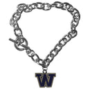 Our classic single charm bracelet is a great way to show off your team pride! The 7.5 inch large link chain features a high polish Washington Huskies charm and features a toggle clasp which makes it super easy to take on and off.Officially licensed College product Licensee: Siskiyou Buckle. Bracelet is 7.5 inches. Easy toggle style clasp. Large link style chain. Washington Huskies charm with enameled team colors