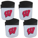 Use this attractive clip magnet to hold memos, photos or appointment cards on the fridge or take it down keep use it to clip bags shut. The magnet features a printed Wisconsin Badgers logo.Officially licensed College product Licensee: Siskiyou Buckle. Pack of 4, 2 inch wide clip magnet, with bottle opener on the back. Strong magnet to hold memos or notes. Use a clip to keep chips or other bag items fresh. The Wisconsin Badgers logo is printed on the front of the magnet