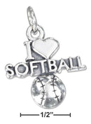 Sterling Silver Charm: Antiqued "i Heart Softball" Charm With A Softball