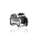 Sterling Silver Heaven Dog Bone With Angel Wing Pet Memorial Slider Bead Pendant