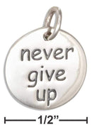 Sterling Silver "never Give Up" Inspirational Message Round Charm