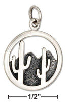 Sterling Silver Charm: Round Hill And Desert Cactus Scene Charm