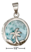Sterling Silver Charm: Round Larimar Pendant With Palm Tree