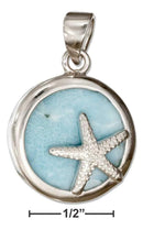 Sterling Silver Charm: Round Larimar Pendant With Starfish