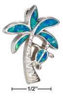 Sterling Silver Synthetic Blue Opal Palm Tree Pendant With Turtle