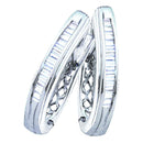 Description Sterling Silver Baguette Diamond Channel-set Women's Oblong Hoop Earrings 1/4 Cttw Gemstone Details 1/4 Carats total weight Specifications Sterling Silver Combined diamond weight of 1/4 carats total weight represents a range of 0.23 - 0.29 cts. t.w.