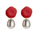 Elegant Women Imitation Pearl Unique Enameled Stud Earrings