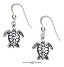 Sterling Silver Earrings: Antiqued Mini Swimming Turtle Earrings On French Wires