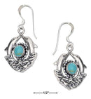Sterling Silver Earrings: Double Dolphin Earrings With Simulated Turquoise On French Wires