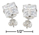 Sterling Silver Earrings: Fancy Segmented Cut 6mm Square Cubic Zirconia Studs