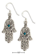 Sterling Silver Filigree Hand Of God Hamsa Earrings With Simulated Blue Stone