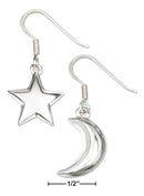 Sterling Silver High Polished Puffed Moon And Star Earrings