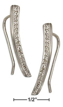 Sterling Silver Earrings: Micro Pave Cubic Zirconia Curved Bar Ear Climber Pin Earrings