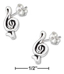 STERLING SILVER MINI MUSIC G-CLEF EARRINGS ON STAINLESS STEEL POSTS AND NUTS